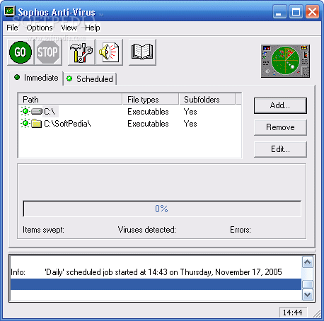 Program paraméterei Sophos Anti-Virus 6.5.6