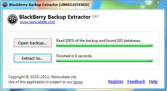 BlackBerry Backup Extractor 0.83 Windows XP/Vista/7 |